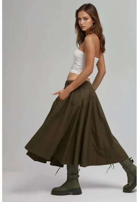 Макси пола А-образна кройка - зелена - текстил