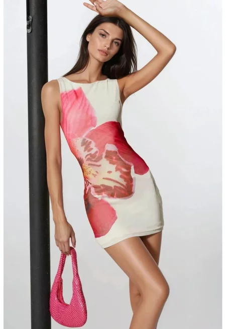 Вталена мини рокля флорален мотив - тюлен материал