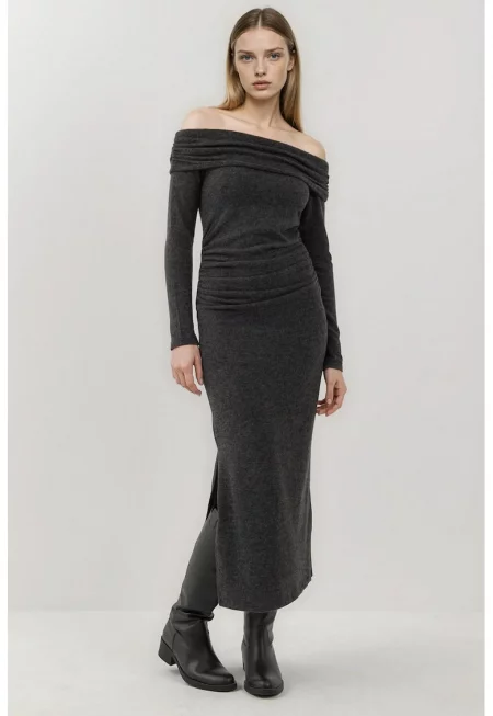 Рокля миди - Тъмно сива - Жарсенощ - Жарсено трико
