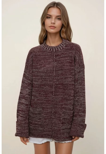 Макси рокля - текстурирана - V-образно деколте - кафява - текстил