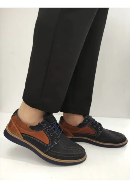 Мъжки перфорирани обувки 1523 - тъмносиньо с кафяво - син