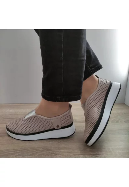 Дамски обувки St-622 перфорирани - сиво-кафяви