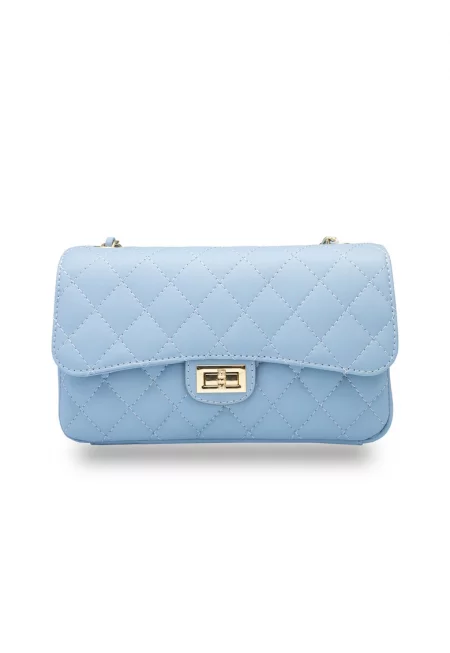 Дамска чанта от естествена кожа - светлосиня Aida