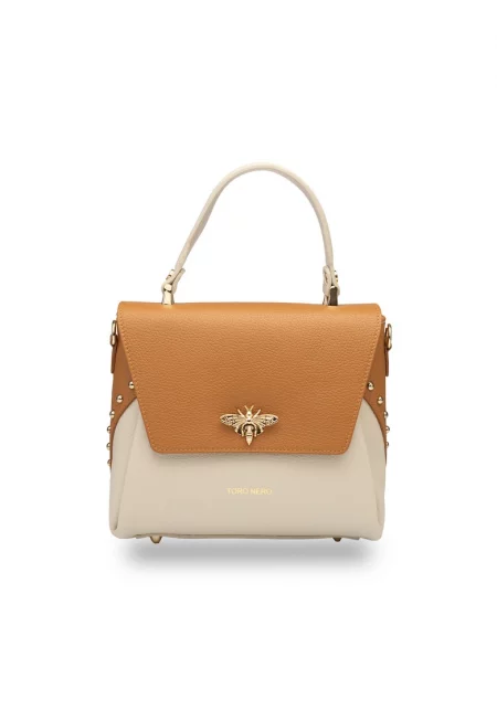 Дамска чанта от естествена кожа бежово-кафява Olivia