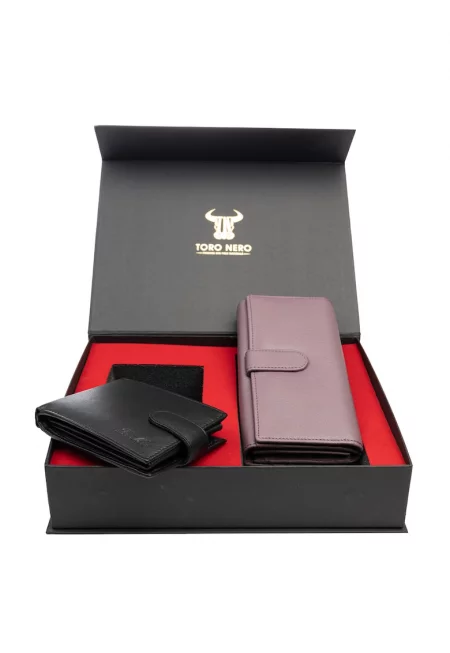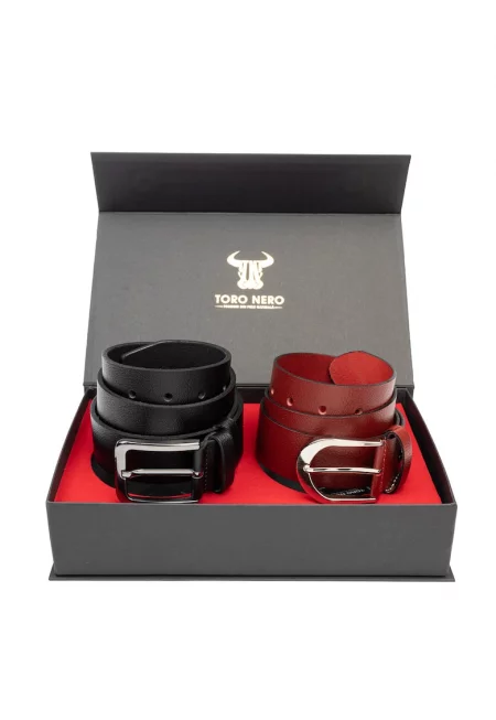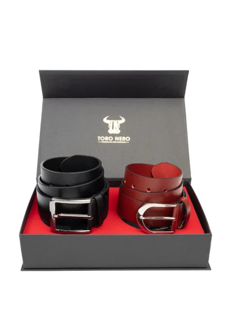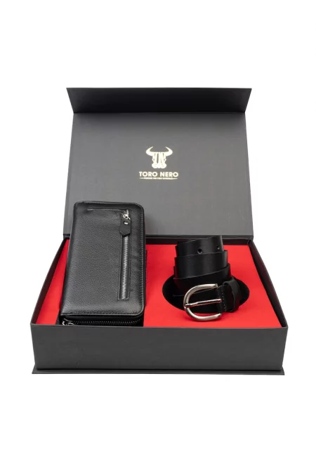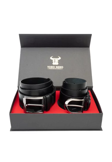 Дамски и мъжки комплект колан естествена кожа черен Thick-Modern Night