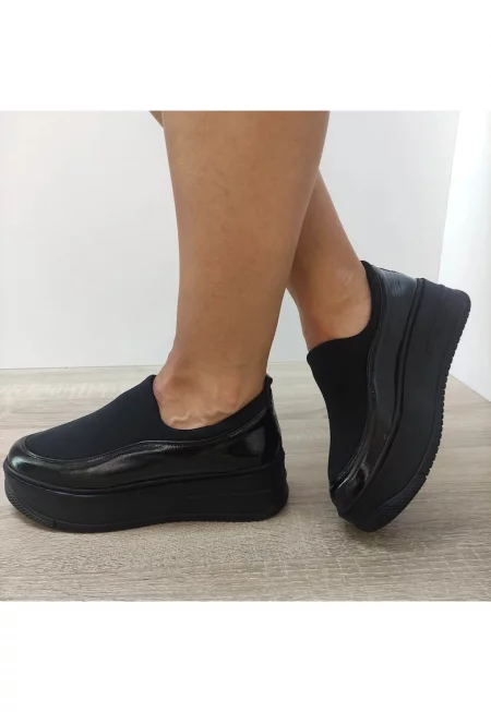 Ежедневни дамски обувки 1375-6 - черен лак + еластичен