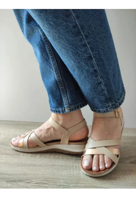 Дамски ежедневни сандали 70423 M2-N Бежов + Бронз - Бежов -