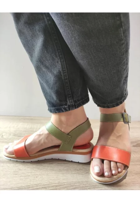 Ежедневни дамски сандали 3465 6 зелени с оранжево - зелени