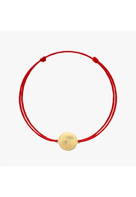 Сребърна гривна с шнур Golden Birth Flower - August Poppy