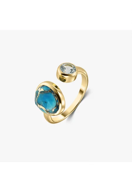 Сребърен пръстен Kaylee Golden – Тюркоазено синьо мед