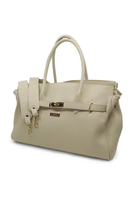 Дамска чанта от естествена кожа Iconica - Кремав