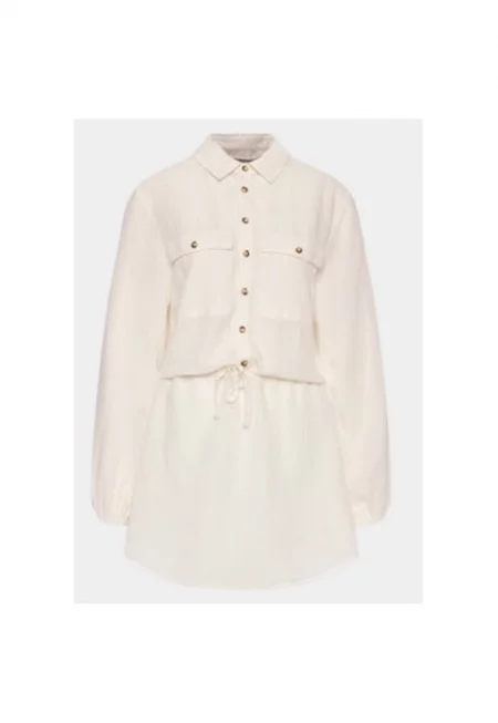 Дамска рокля - 301976882 - Вискоза/Лен - Бяла