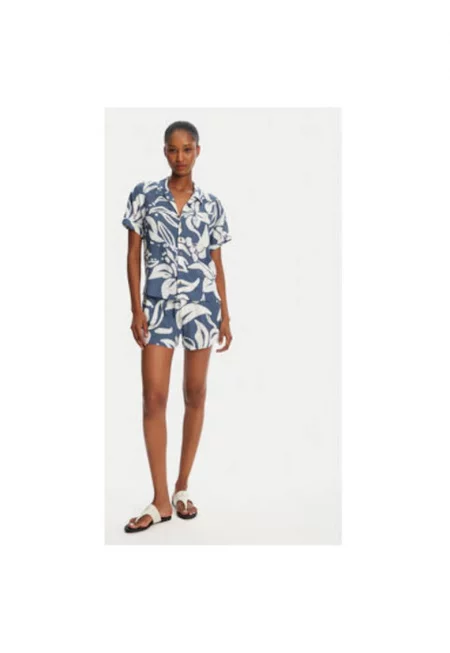 Дамски къси панталони WILLIAM FLOREAL - Вискоза/Лен - Син
