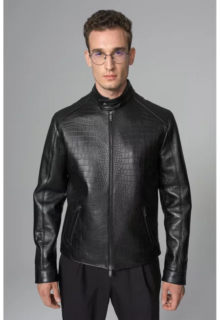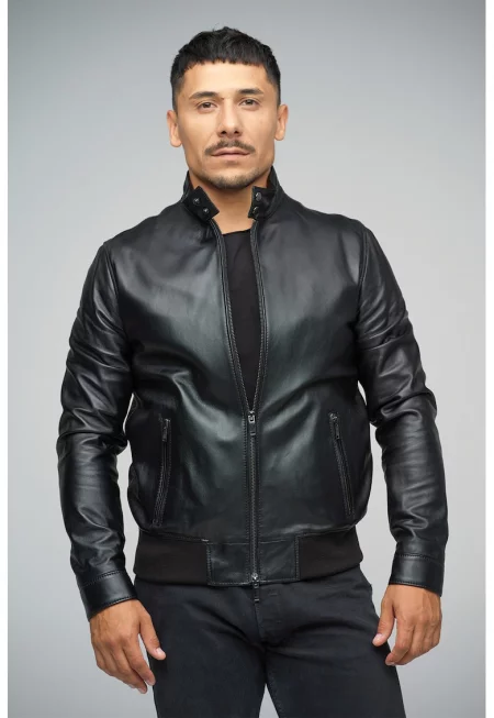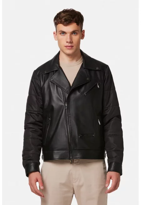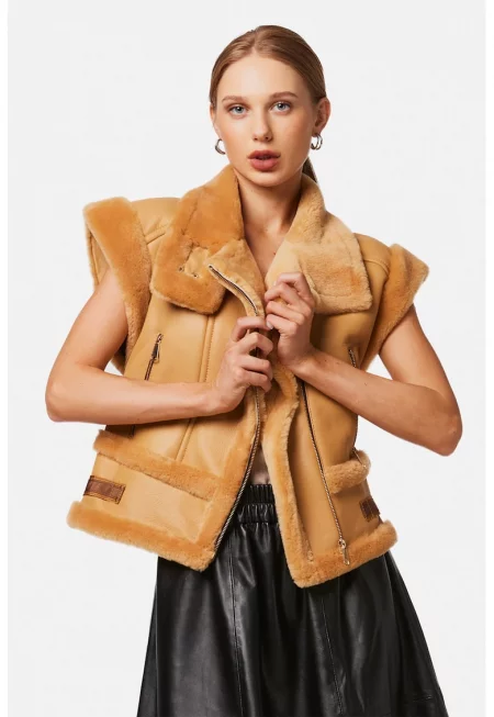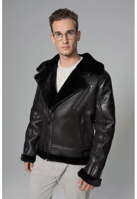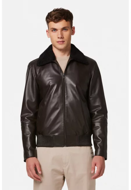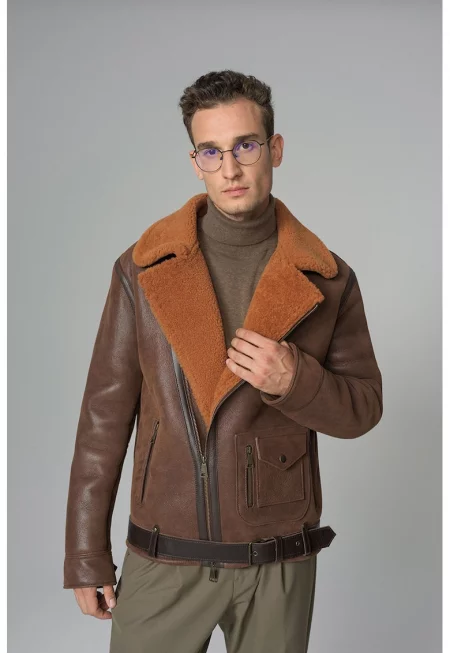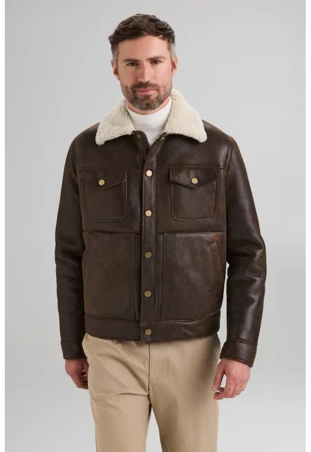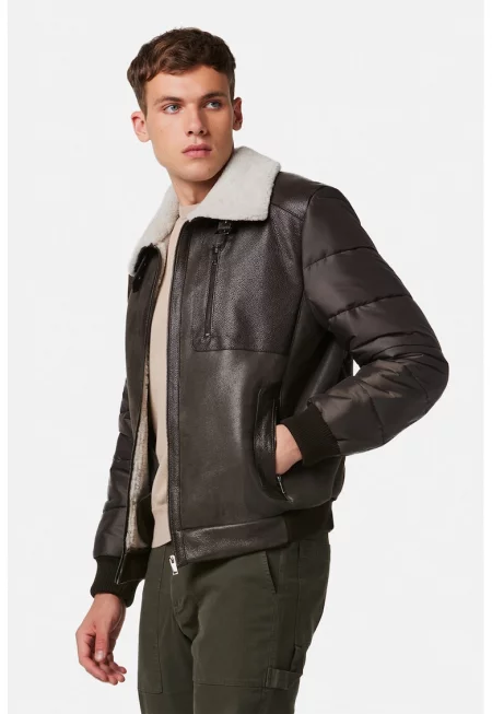 Кожено яке с агнешка вълна - Тъмнокафяв