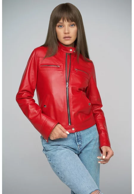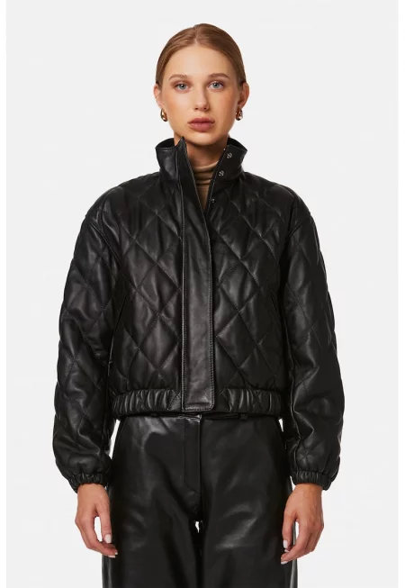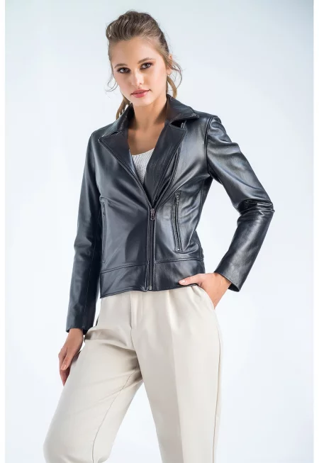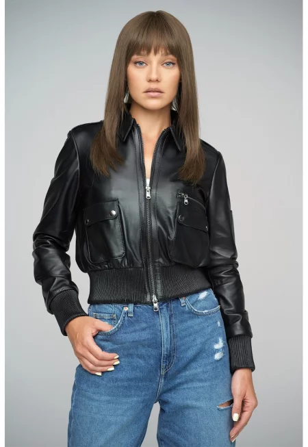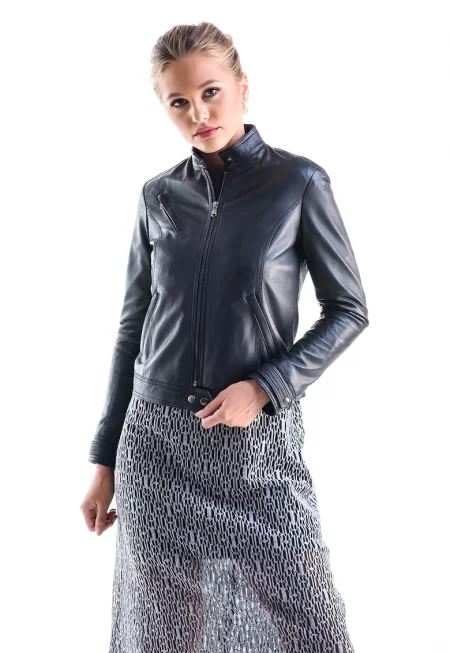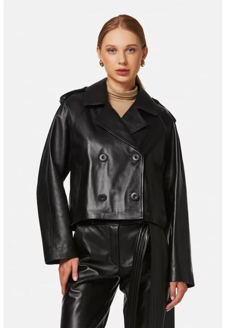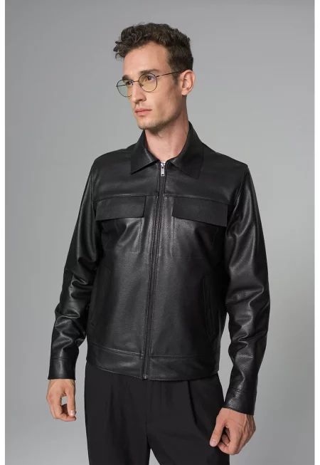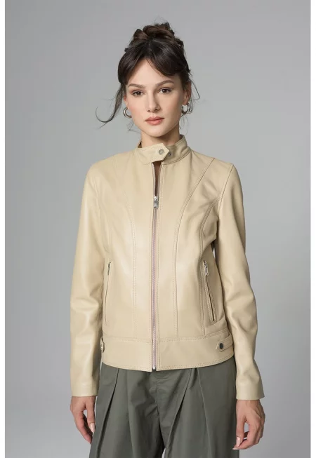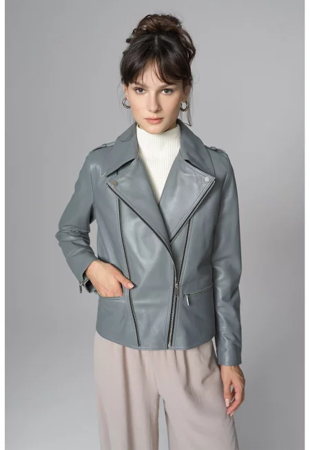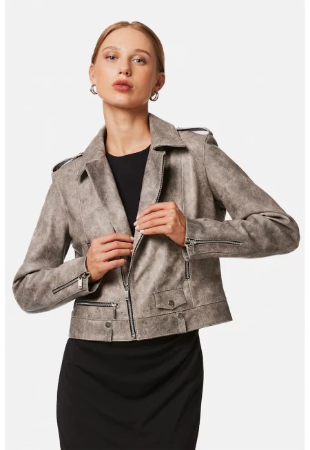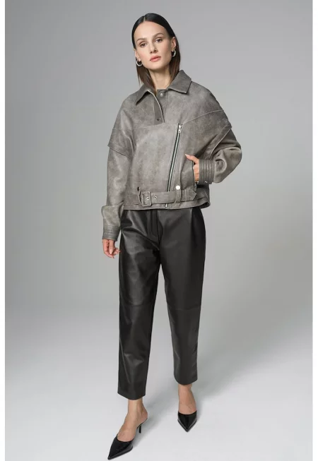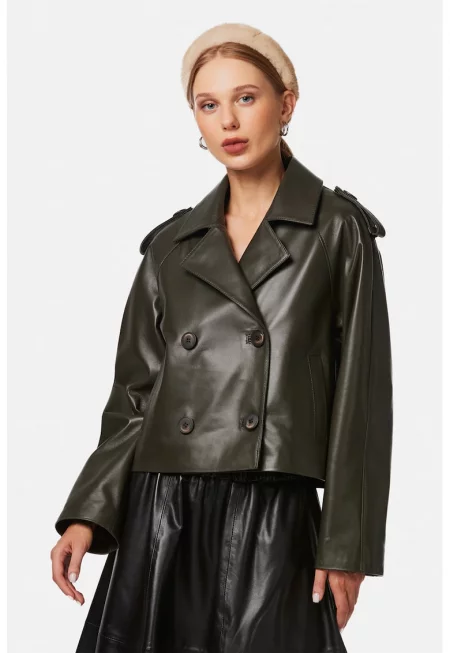 Кожено яке с двуредно закопчаване - Тъмно каки
