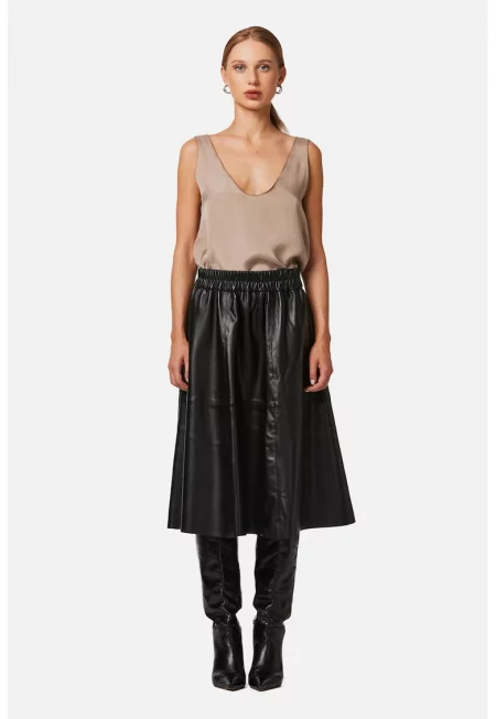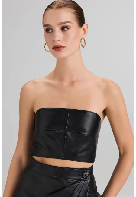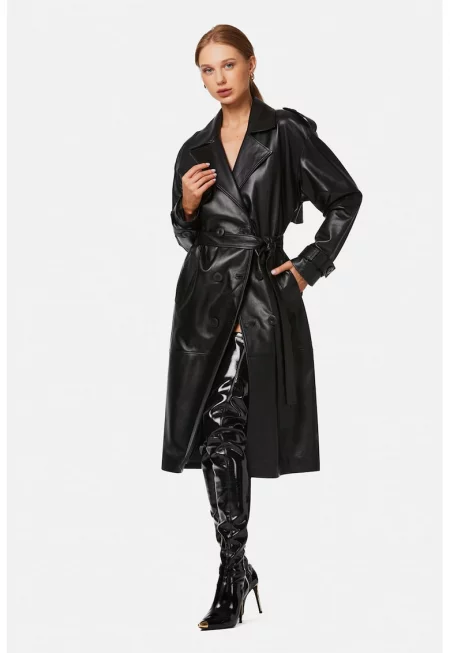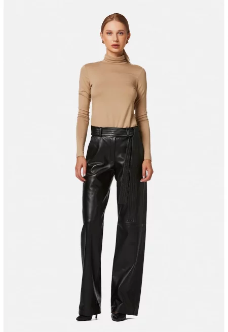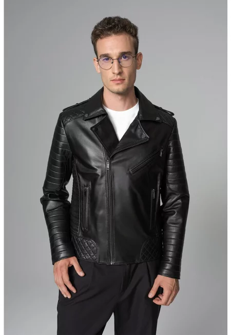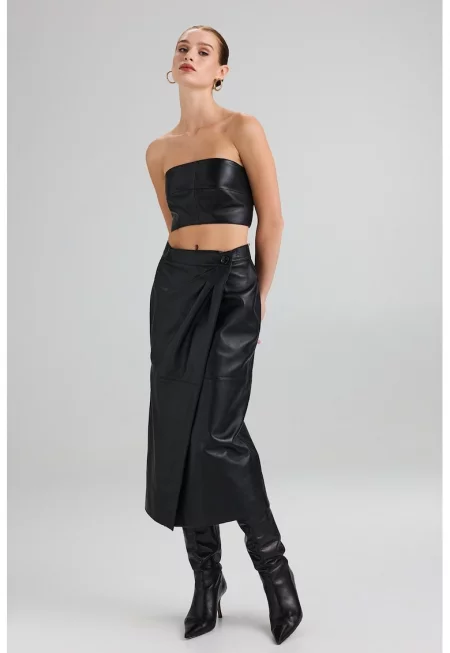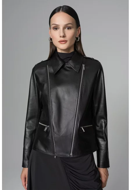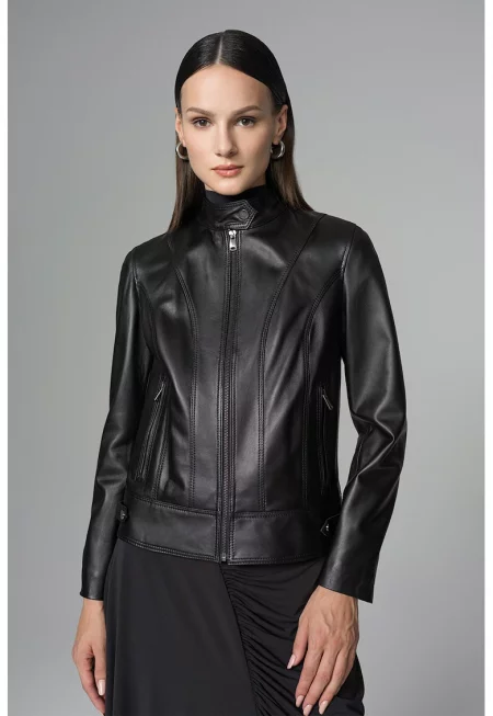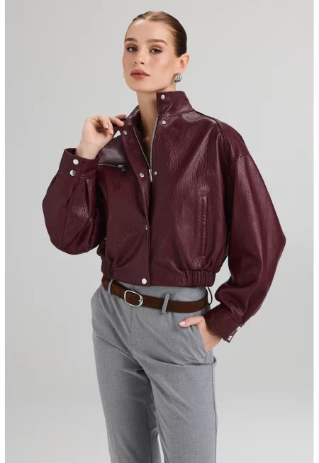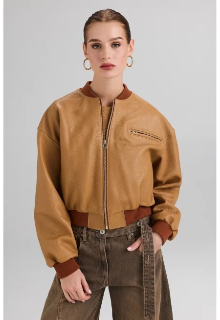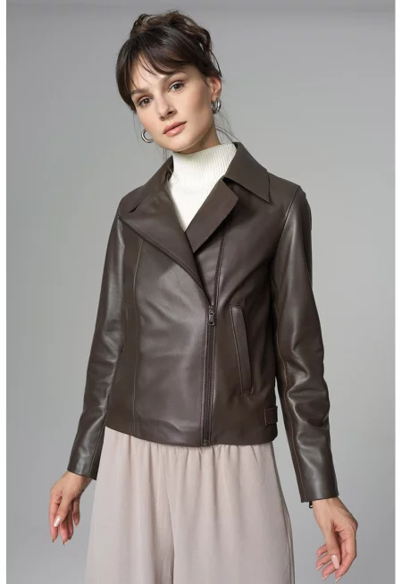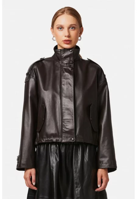 Кожено яке с паднали ръкави - Тъмнокафяв