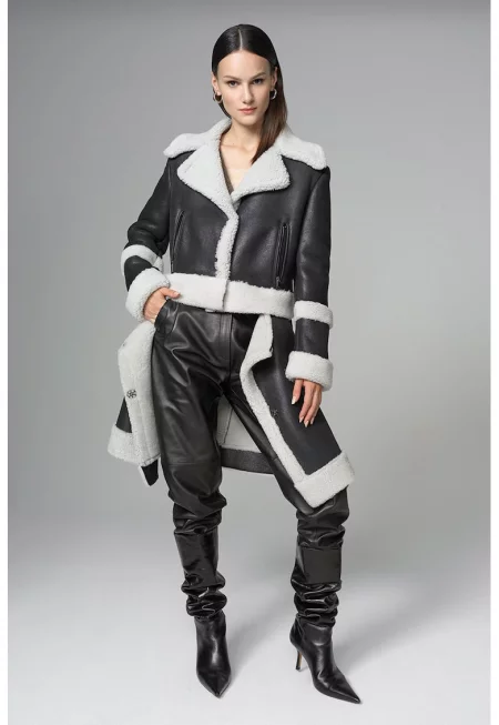 Палто 2 в 1.2076 - Агнешка кожа - Бял/Черен
