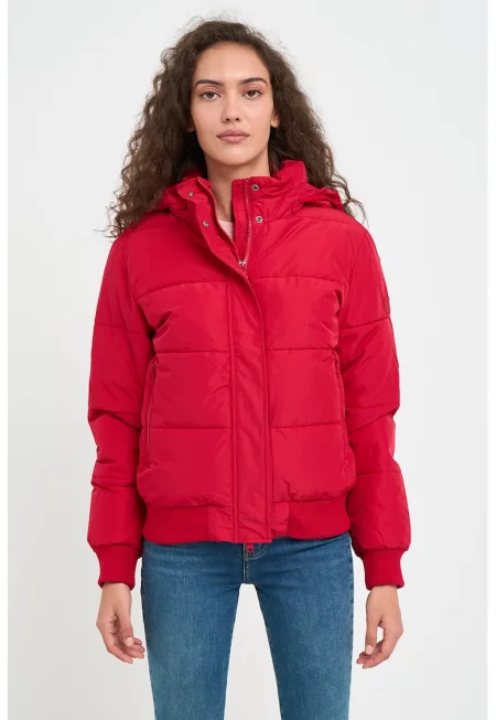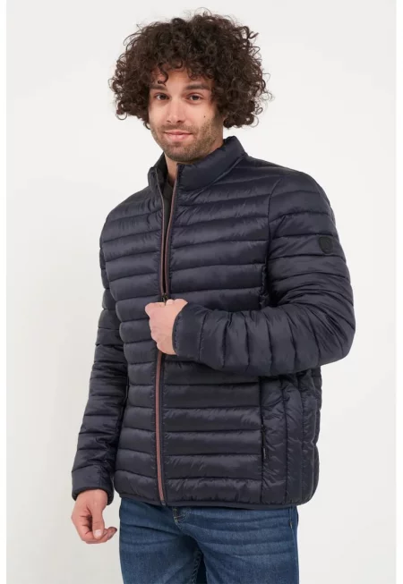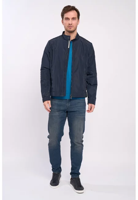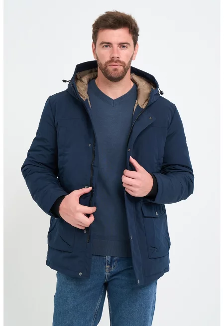Зимно яке с качулка и джобове с капаче - Тъмносин