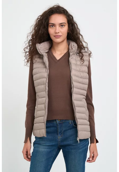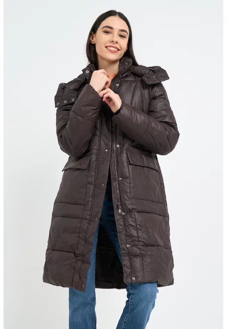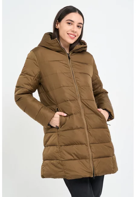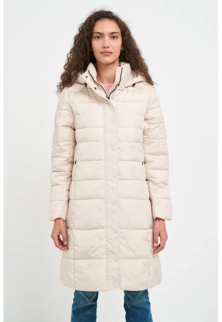 Дълго непромокаемо капитонирано зимно яке - Крем