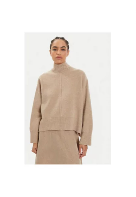 Дамски пуловер - 304213328 - Мериносова вълна - Бежов - Бежов