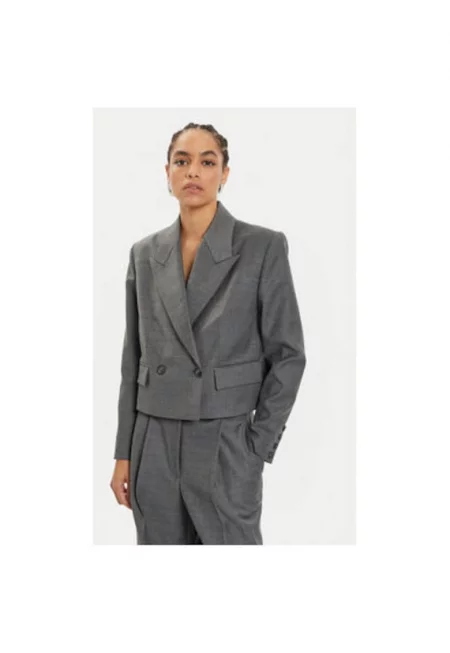 Дамско палто - Айви Дъб - 303365349 - Вълна/Полиамид - Сиво - Сив