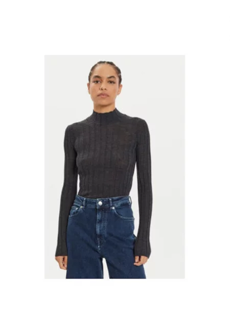 Дамски пуловер - 304213359 - Мериносова вълна - Сив - Сив