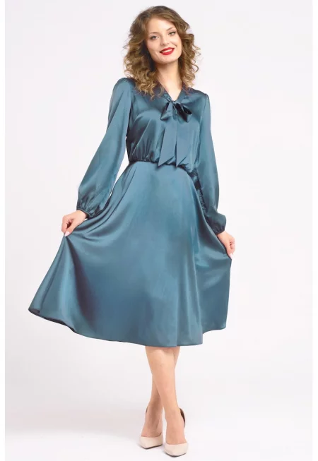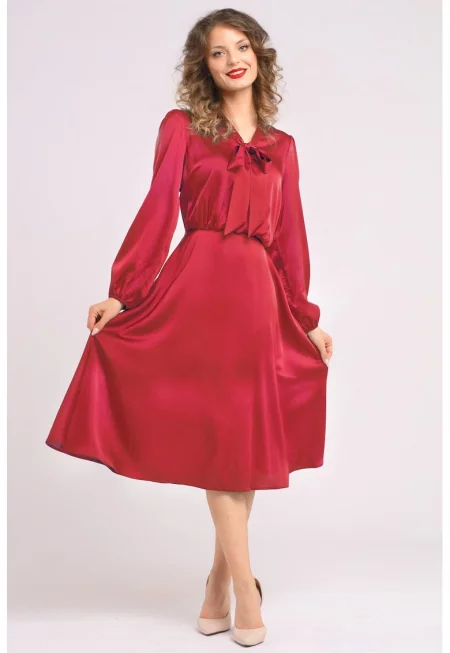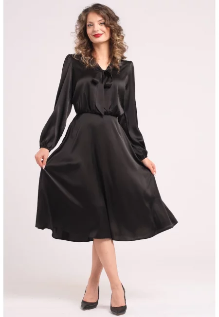 Сатинирана рокля с панделка