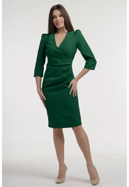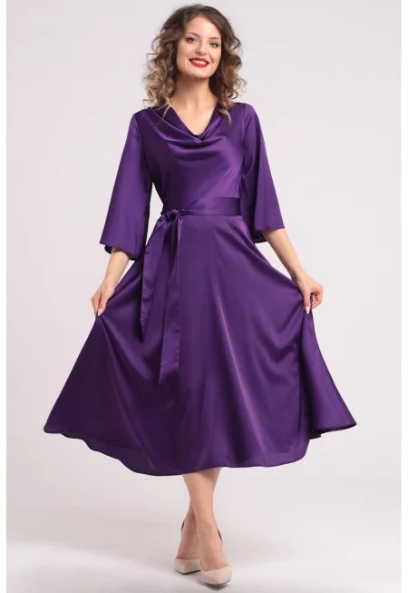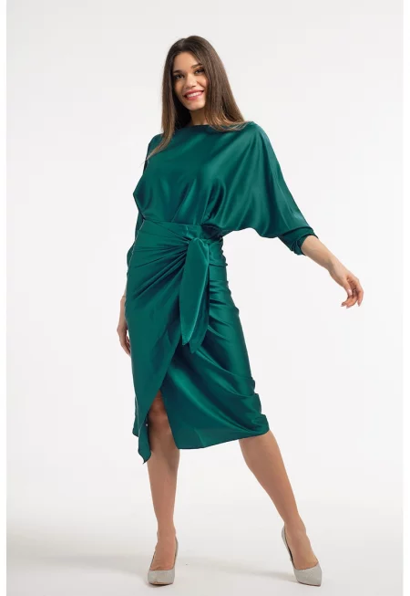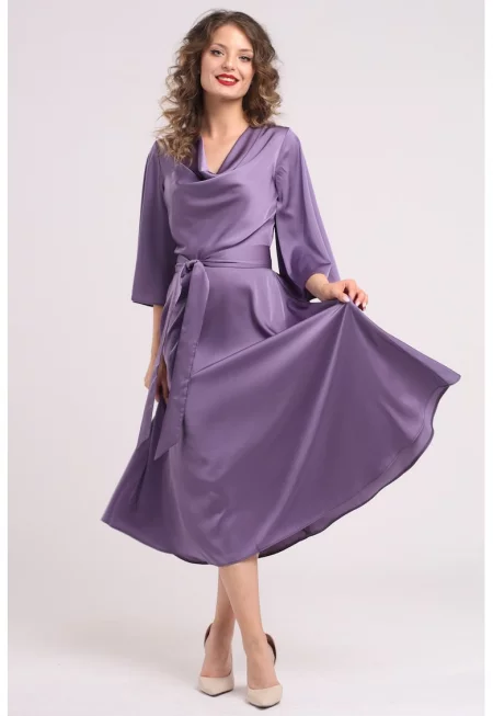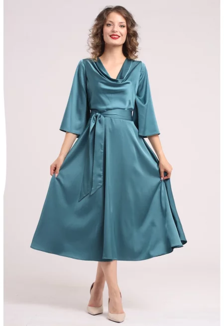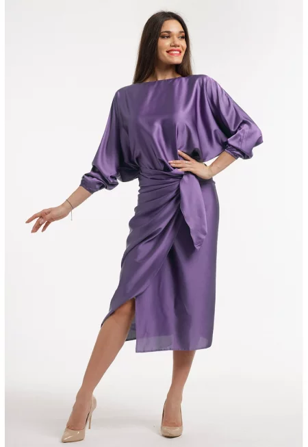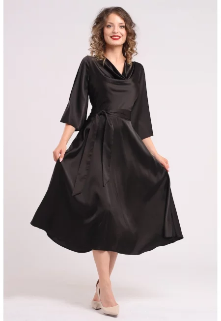 Сатинирана рокля с драпирано деколте