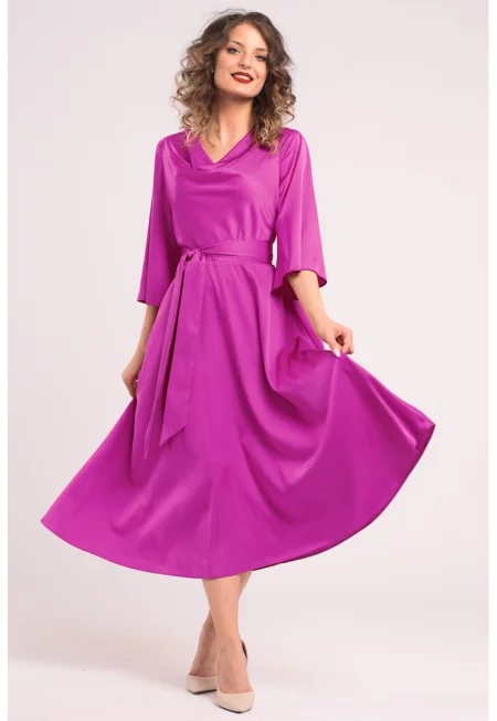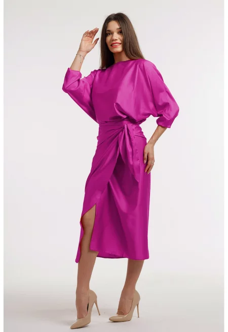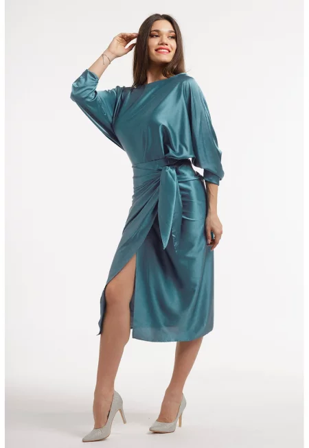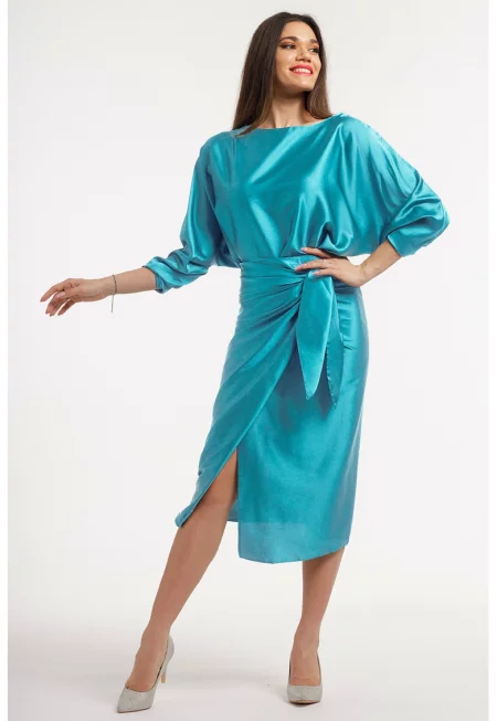 Разкроена сатинирана миди рокля