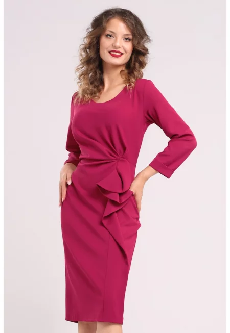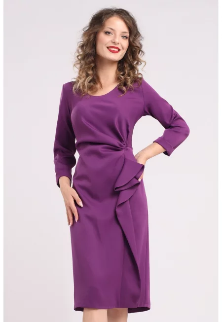 Плисирана миди рокля с джобове встрани