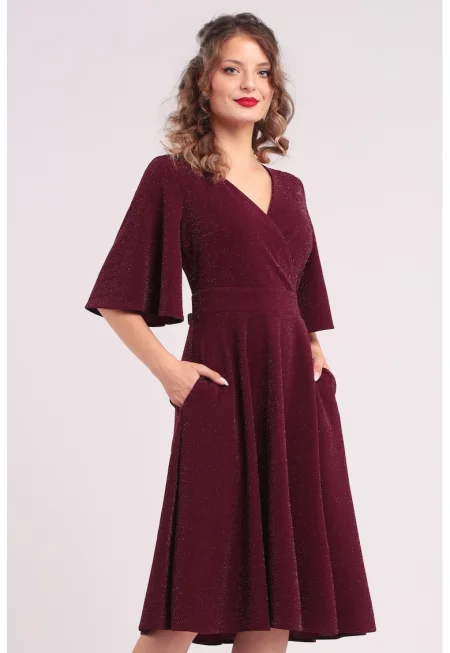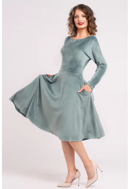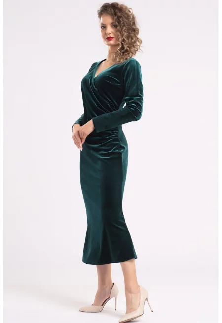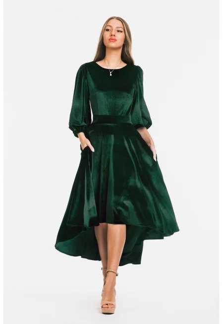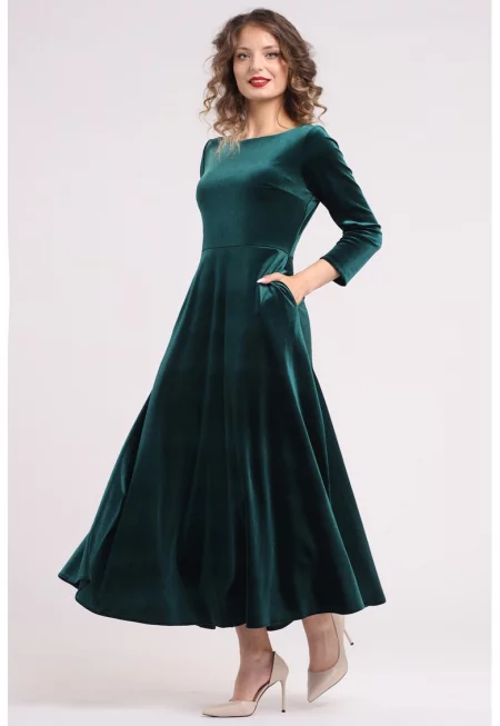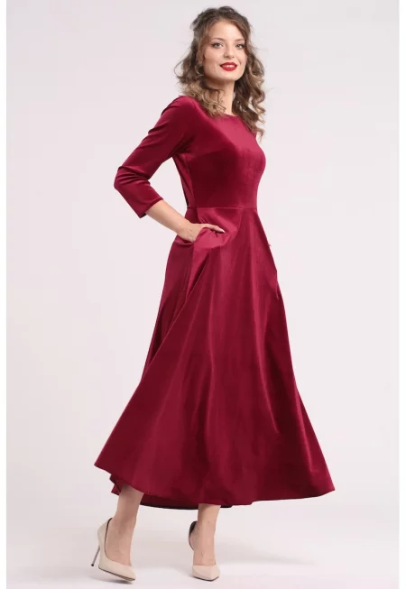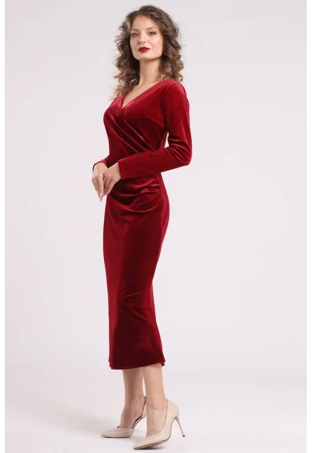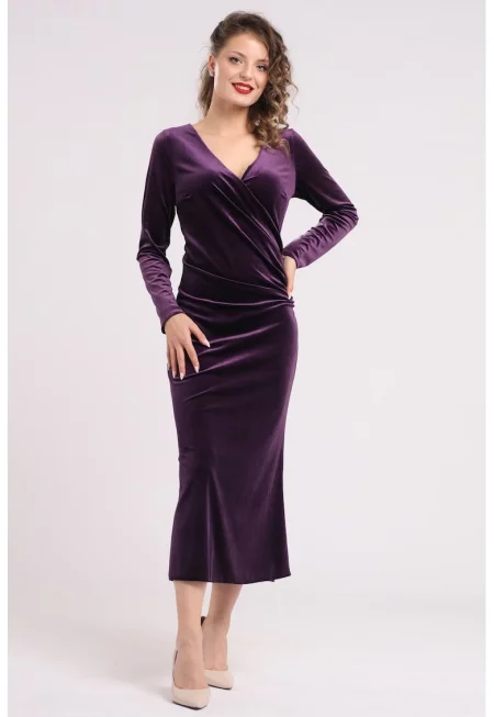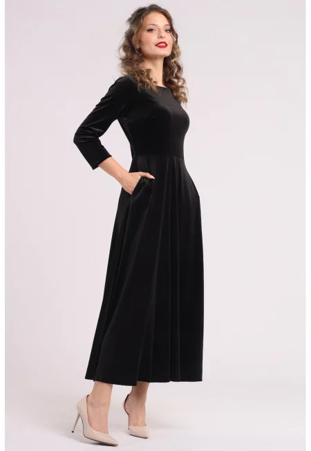 Дълга разкроена рокля с цепка встрани и връзка на подгъва