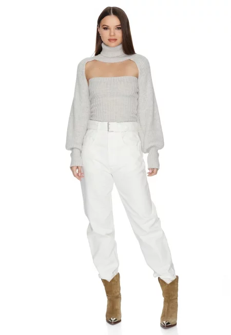 Къс пуловер Alber с ръкави реглан - Светло сив