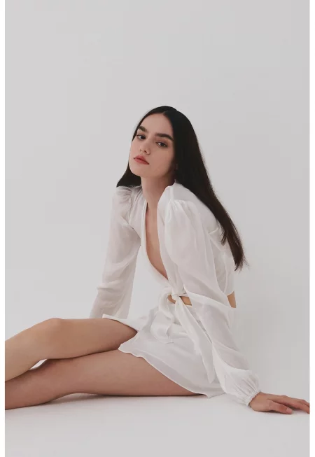 Къса разкроена рокля Alinka от коприна - Мръснобял
