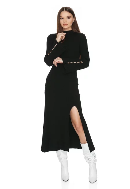 Рипсена рокля Dhalia с цепка встрани - Черен