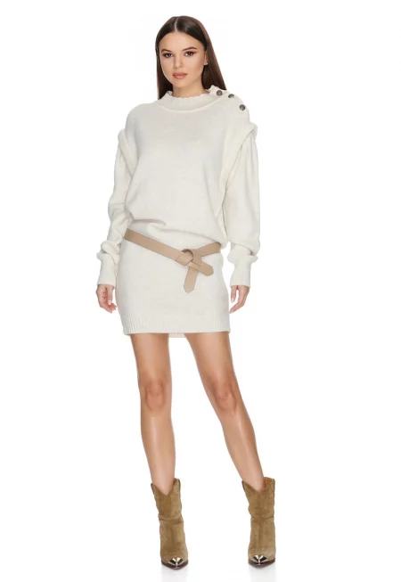 Рокля Dulce тип пуловер с вълна - Слонова кост