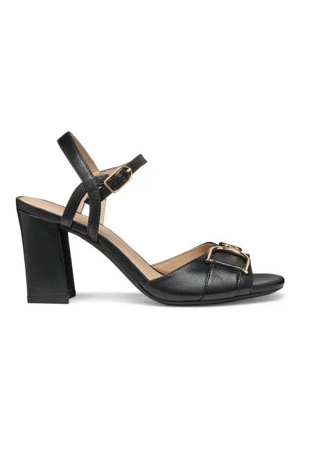 Скосени кожени сандали с каишка с тока