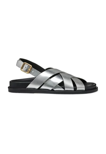 Кожени сандали с метализиран ефект