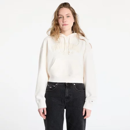 Суитшърт Tommy Jeans Boxy Crop Varsity Hoodie White M