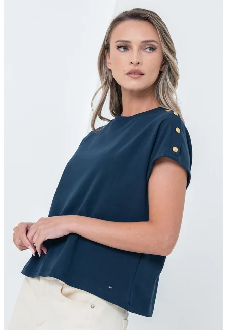 Тениска с декоративни копчета на ръкавите