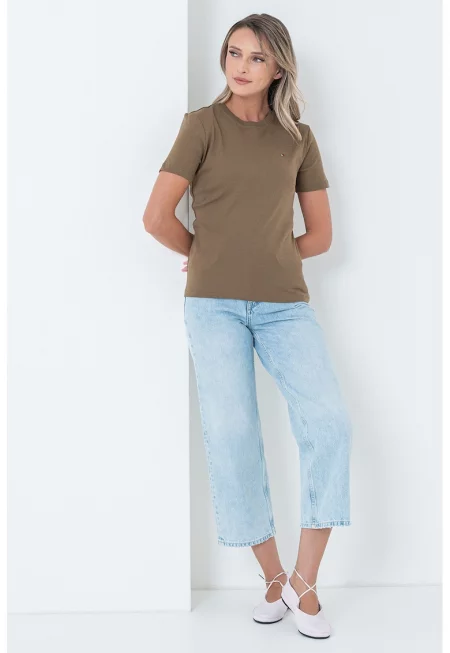 Памучна тениска с овално деколте
