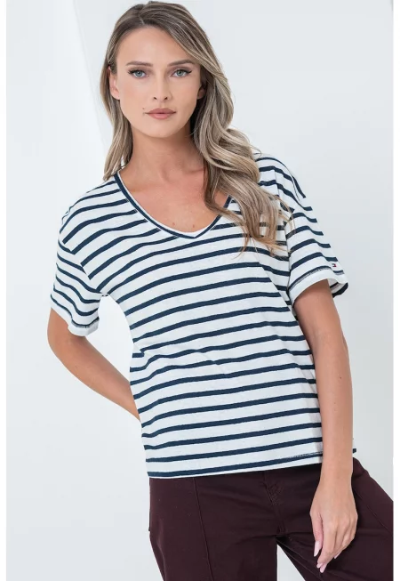 Раирана свободна шпиц тениска с лен