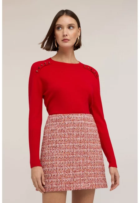 Пуловер с вълна с паднали ръкави и декоративни камъни