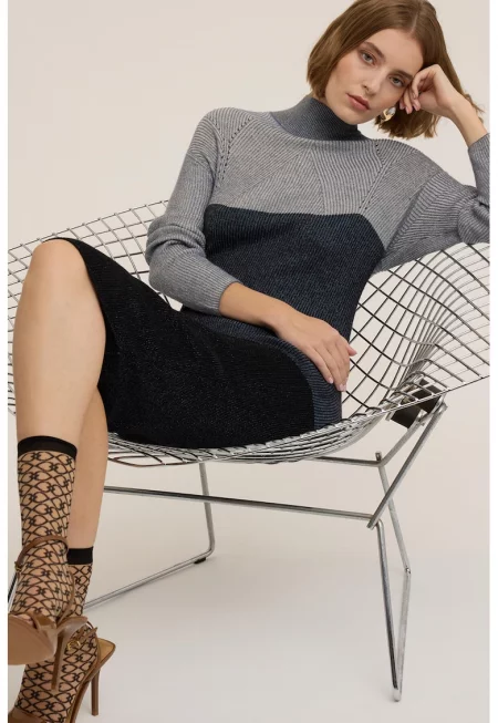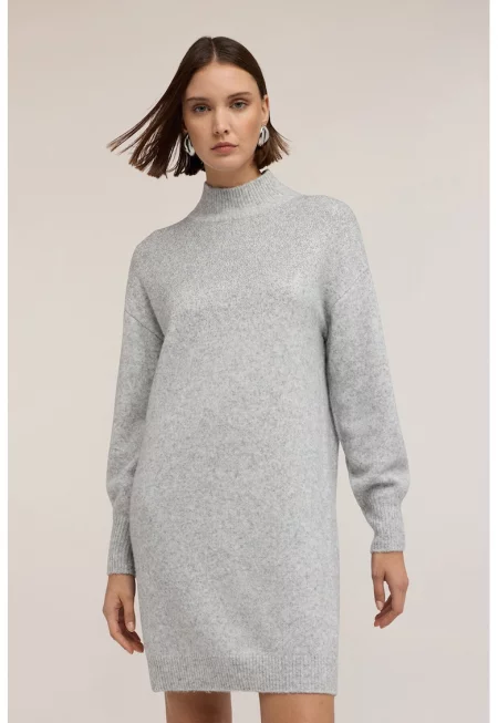 Рокля-пуловер с вълна с висока яка