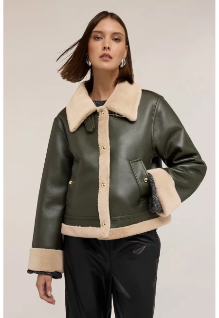 Палто от еко кожа с еко пух