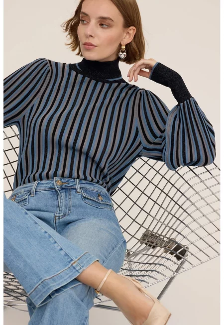 Раиран шпиц пуловер със свободна кройка