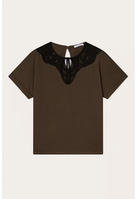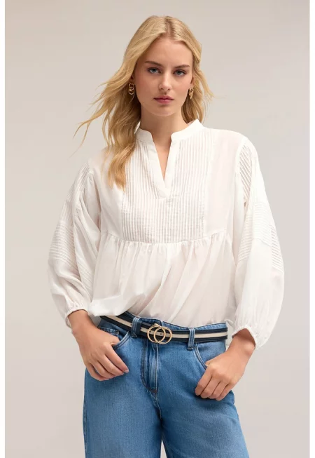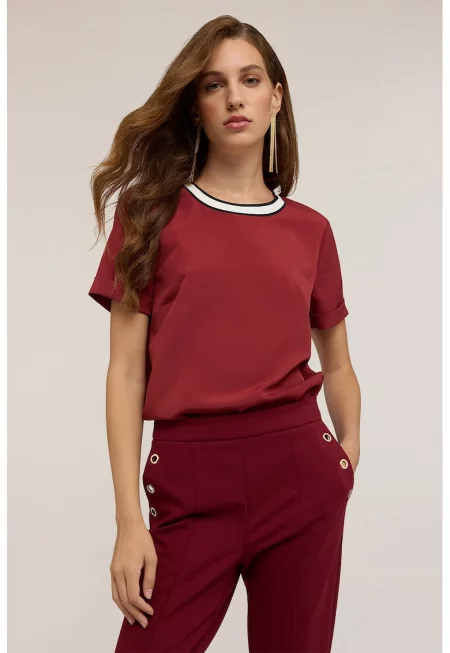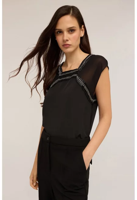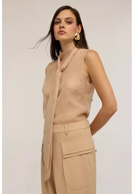 Полупрозрачна блуза с декоративни камъни и вратовръзка