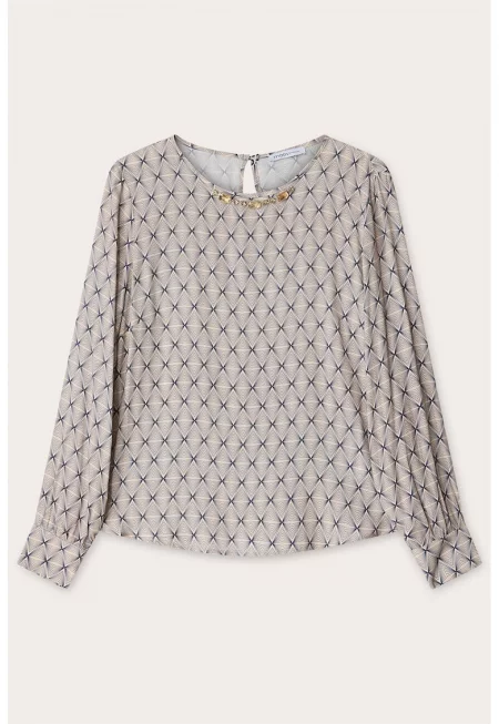 Десенирана блуза с декорирано деколте