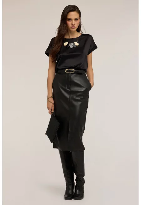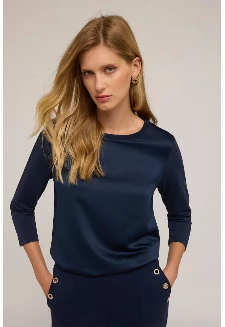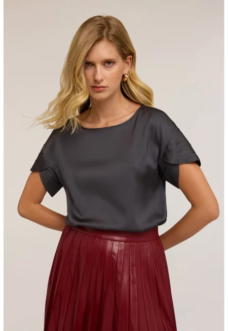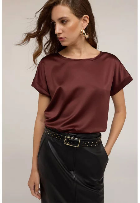 Тениска с овално деколте и сатиниран ефект