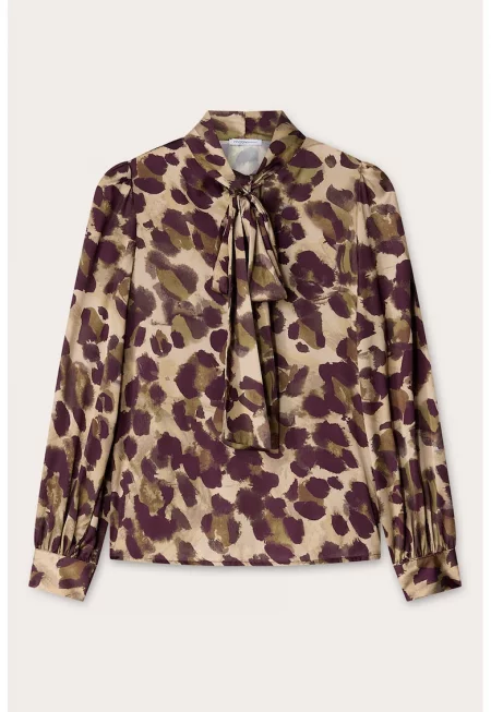 Блуза с животинска шарка и голяма панделка на яката
