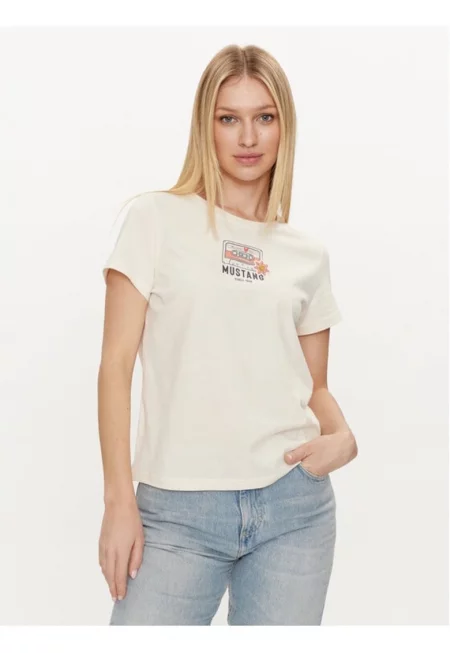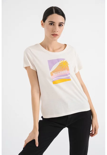 Дамска тениска - 543456 - Екрю - Памук -